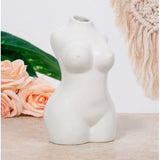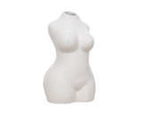 A sleek and modern touch to add to any living space. A white vase, with a smooth glazed finish, shaped in a women's body. Ideal for adding a contemporary look to any home.