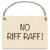A fun mini metal sign featuring neutral colourway - no riff raff!!
