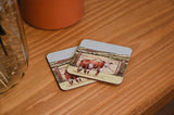 This stunning countryside scene featuring Hereford Cattle on these lovely coasters. Available in four different designs, this is part of our own Glorious Grouse brand of homeware collection.