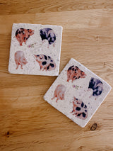 Stunning marble coasters showing off some beautiful British traditional pig breeds.
