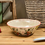 A stunning hand painted debossed large bowl featuring the lovely strawberry design.